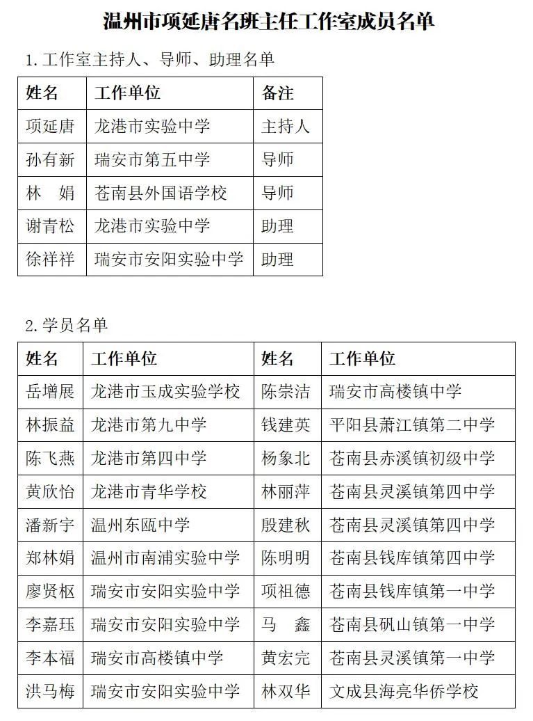 关于举行温州市项延唐初中名班主任工作室第34次活动的通知