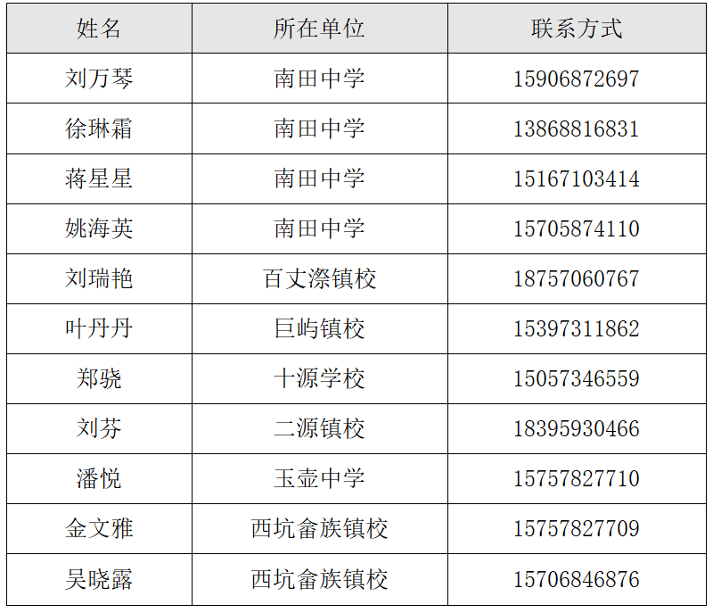 温州市任佩如名师送教工作室学员(见下表)