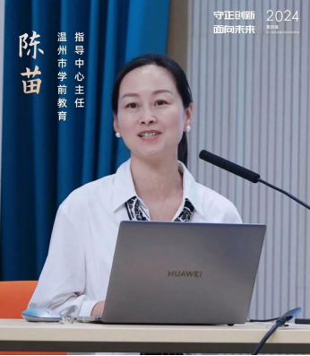 6月6日下午,在儿童中心分会场,会务组特邀浙江省学前教育研究会副秘书长、温州市教育局基础教育处副处长、温州市学前教育指导中心主任陈苗,她以《高质量发展视域下“未来乡村园”新样态的建构》为题,从乡村办园的问题与困惑出发,围绕“重塑乡村幼儿园的价值使命、实施未来乡村园五重构策略、创构未来乡村园的发展样态”三部分内容进行了乡村园办学的深度解读与分享。提出“一个村就是一所园,一个娃撬动一个村”新理念,促农村学前教育走出三条新路子:农村幼儿园整体提升的“质量蝶变之路”、厚植地域特色的“文化传承之路”、城乡共融发展的“共富探索之路”。并指出“乡村学前教育不仅为儿童的现在,也为儿童的未来;不仅为儿童,也为成人;不仅为育人,也为全社会发展”。陈主任的精彩分享,赢得了专家与同行的一致好评。